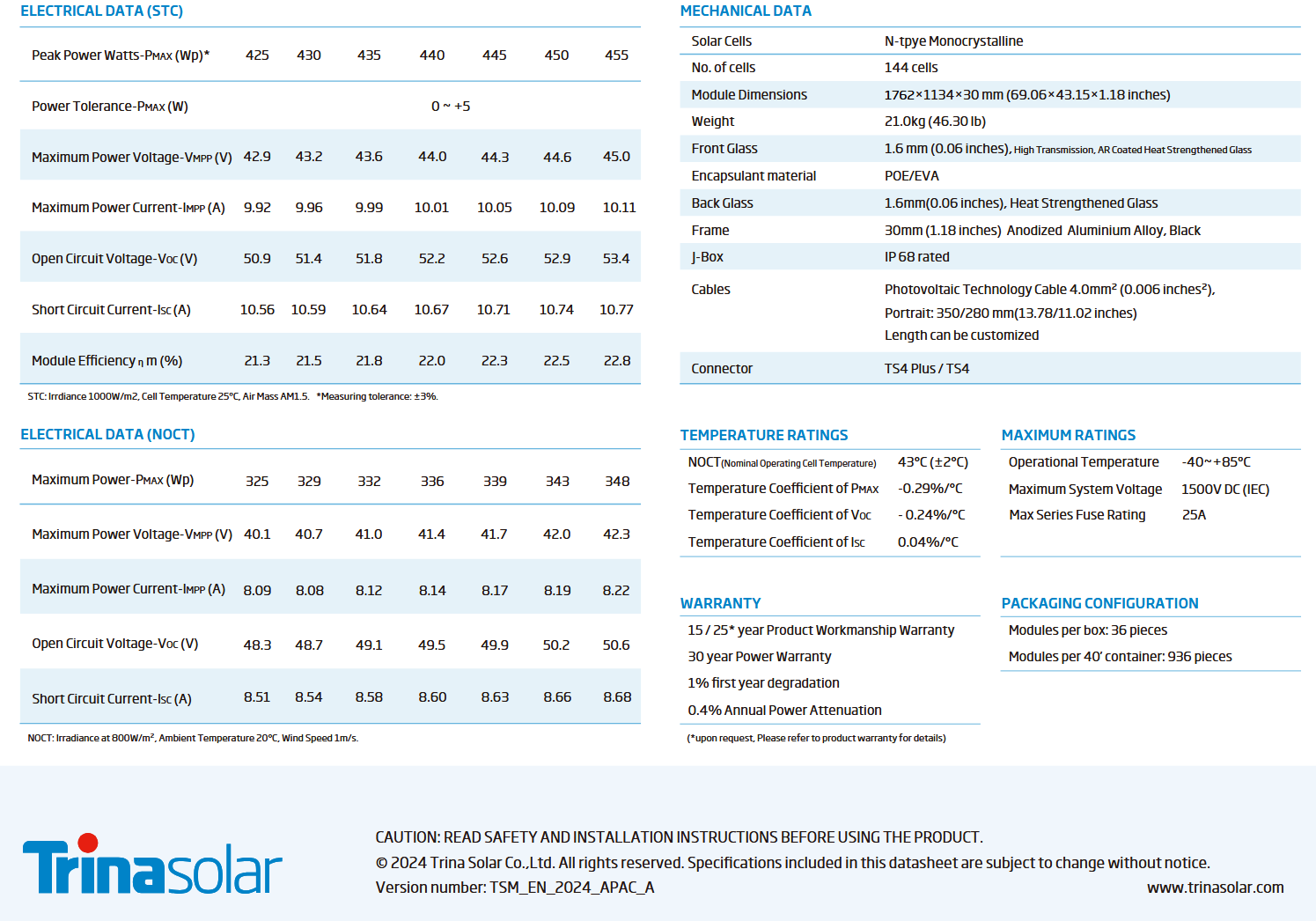 Trina Solar – vienas seniausių ir patikimiausių saulės modulių gamintojų pasaulyje, savo veiklą pradėjęs dar 1997 metais. Per daugiau nei 25 metų patirtį, „Trina Solar“ tapo viena iš pasaulinių saulės energetikos lyderių, garsėjanti inovacijomis, patikimumu ir itin aukšta produktų kokybe.